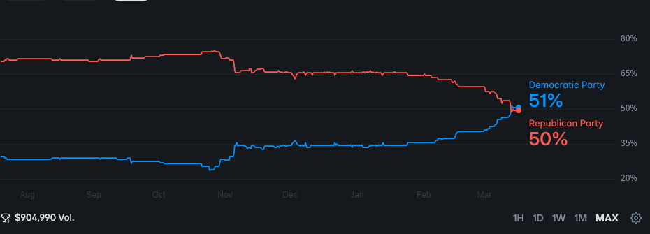@Ghislaine You can argue the degree, but the senate odds and 2028 presidency odds are both down significantly as a result of the war. Questionable whether a Dem senate is meaningfully different from Thune's, I suppose.