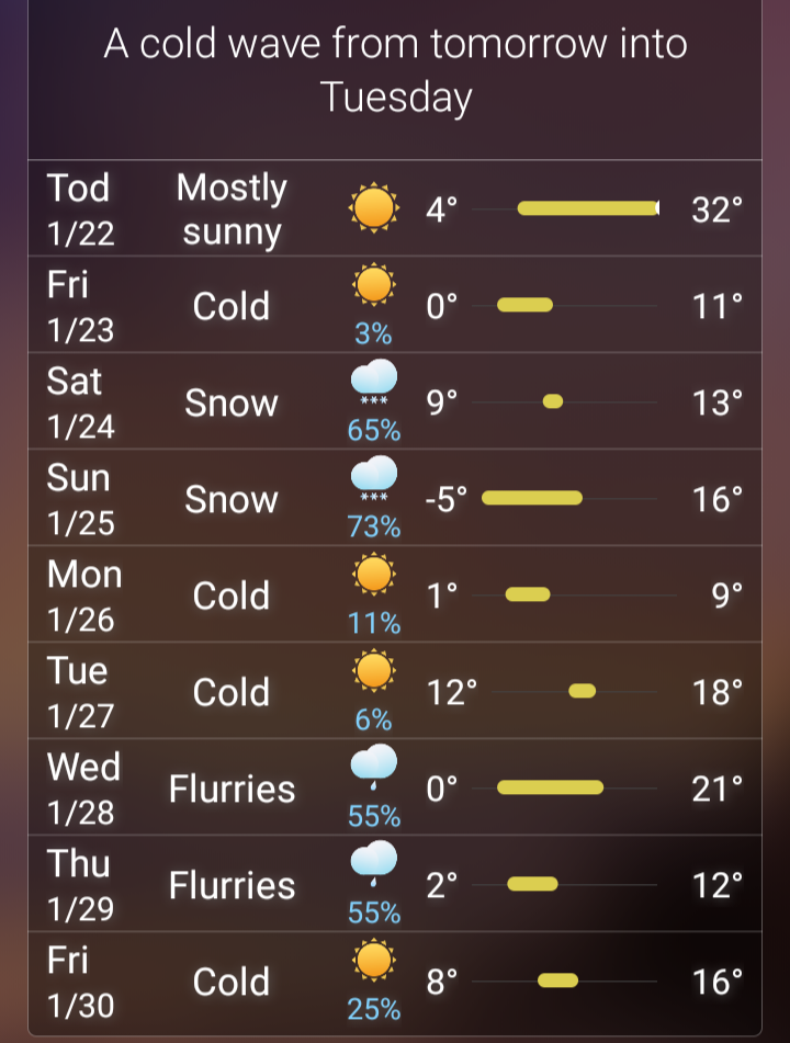 @Sovereign its cold af, expecting snow storms and a friday night.