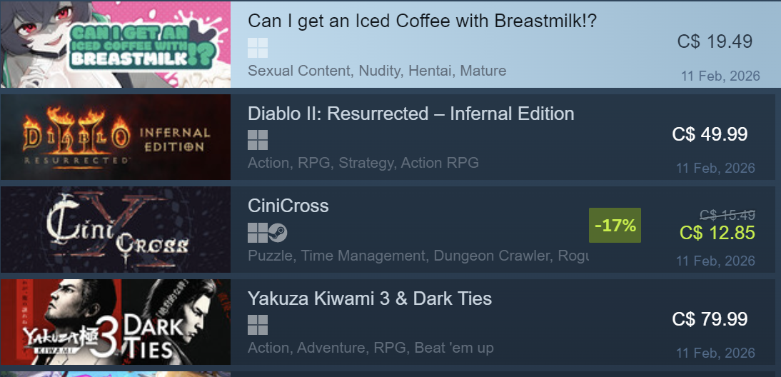 anime graf stancil π°οΈπͺ @graf@poa.st remote 3w Copy link Open link >check out steam storefront>new & trending>can I get an iced coffee with breastmilk?